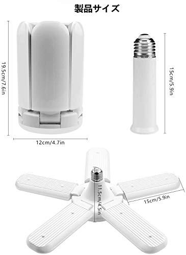 【調節可能LED電球】6灯一体型で5灯が角度調節可能、上下90°まで動かせることができ、配光(光の広がり方)約270度周りを明るく照らすLEDライト、隙なく照らすことが可能です。ガレージ、店舗、倉庫、玄関などにお使いいただけます。