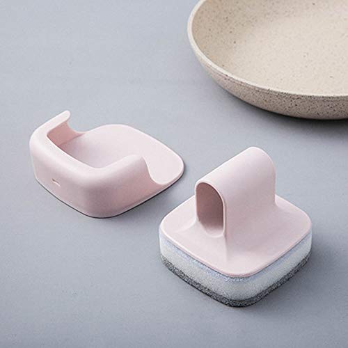 食器洗いブラシ キッチン スポンジ なべブラシ 壁掛け 自着式 クリーニング スクラバー ホーム 用品 (ピンク