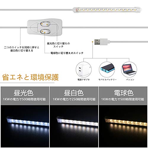 LED バーライト USBライト 高輝度led蛍光灯 USB 棚下ライト 20%明るくする、 三つ光変換、1kwの電力で500時間