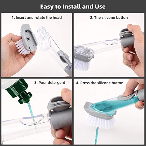 鍋鍋のためのキッチンブラシ:使用に便利:それを開くために反時計回りにハンドル端でループを回し、体を埋めるために石鹸を注入し、時計回りにロックします。クリーニングを開始するには、ボタンを押すだけで、空気変位を