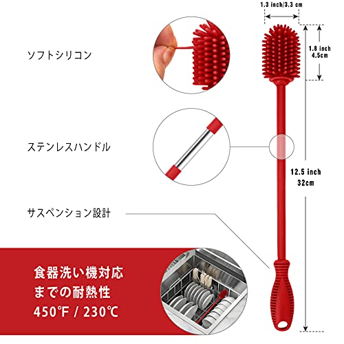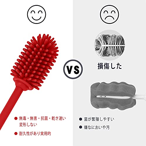 ddLUCK 長柄シリコン製瓶ブラシ ボトルブラシ シリコン ブラシ BPAなし30.5cm水筒ブラシ ハイドロフラスコ スポ