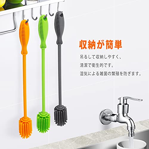 【多目的クリーニングツール】シリコンブラシはハンドルが長く、ボトルの角まで伸ばして残留物を取り除くことができます。 それは皿、スポーツボトル、魔法瓶、ティーカップ、サーモスボトル、水道管、ブ