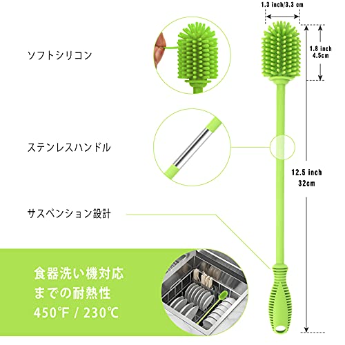 【高品質素材】すべてのブラシはFDA認定のシリコン素材と100%BPAなし、食品級のシリコンボトルブラシ、汚染がなく、絶対な環境保護が施されています。