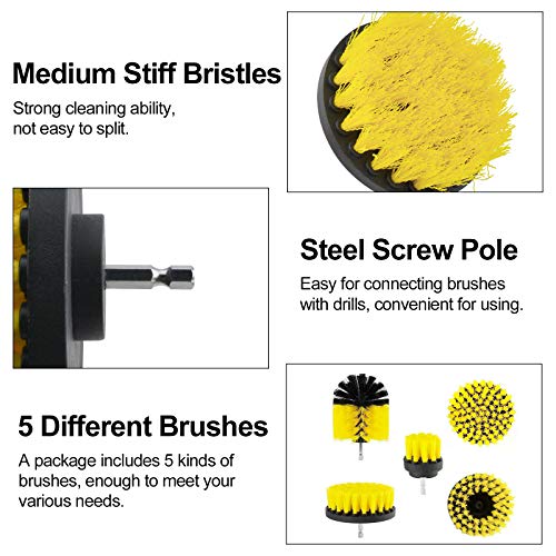 INCREWAY 5ピースドリルブラシアタッチメントキット、さまざまなドリルクリーニングブラシパワースクラバード