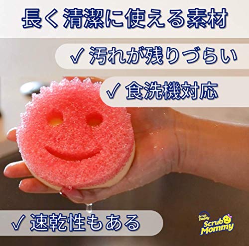 【表面を傷つけにくい】 スクラブマミーは、研磨剤やスチール素材を使っていません。なので、ステンレス、テフロン加工、ガラス、プラスチック、木材など、デリケートな表面でも傷つけづらいです。