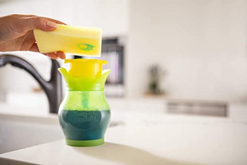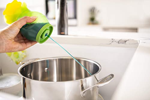 【便利な2通りの使い方】上の部分をプッシュして直接スポンジにつけるか、ボトルの横を押すと下から洗剤が出るので、フライパンなどに直接洗剤をつけることができます。