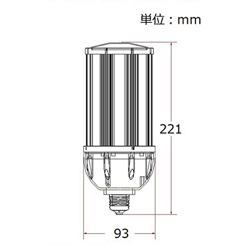 品質:PC+アルミニウム合金で、放熱効果が優れています。既存の水銀灯や白熱電球200~250W相当。