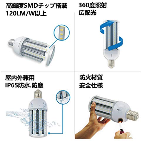 | 商品名 | FWAYTECH LED水銀灯 E26 E39口金両対応 36W 4200LM以上 昼光色相当6000K LED街灯 LEDコーンランプ 200W-250W水銀灯/水銀 |