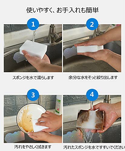 【水だけで汚れ落とし】この魔法スポンジは、水をつけてこするだけで使いやすく、食器やお皿の表面を傷つけず に手入れできます。研磨剤や腐食性の洗剤を使う必要なく、水で湿らせ、絞って拭くだけで、消しゴムのように 効きます
