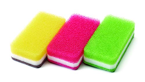【台所用スポンジ】大きめの網目気泡スポンジ、細かい気泡ウレタンフォーム、研磨材入り不織布の3層構造で、あらゆる食器、調理器具を洗浄。丈夫で、泡立ち・泡切れも満点です。