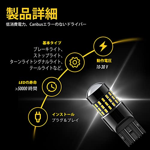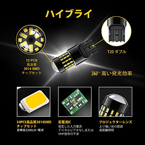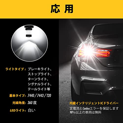 【フィット】標準T20デュアル輝度タイプランプ,無極性で取付簡単。適合:T20 7440A 7440NA 7440 7440SV 7443NA 7441 7443 7443R 7444 992 WY21W W21/5W W21Wなどインストール、プラグアンドプレイが簡