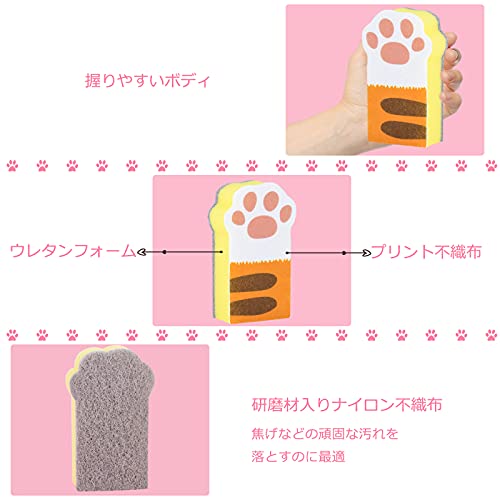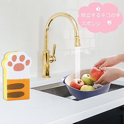 Toplife 猫の手 キッチンスポンジ 3個セット 3層構造 台所スポンジ(ハードタイプ)