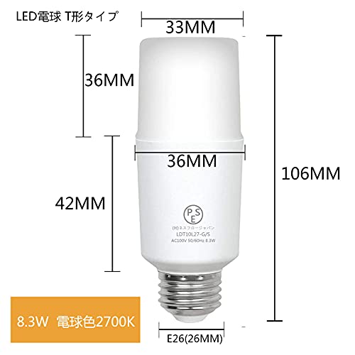| 商品名 | T形タイプ LED電球 E26口金 T形 100W形相当 8.3W 電球色 2700K 1080lm 全方向タイプ 電球形蛍光灯 EFD25・EFD15代替推奨 断 |
