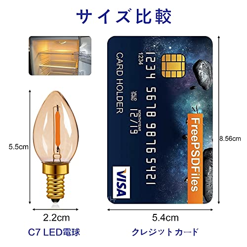 C7G 電球LEDライト:電圧:100V、電力:0.5W、Supre Warm 2200K、ゴールデンのガラス、 口金:E12 サイズ:2255MM