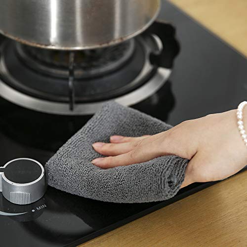 Winthomeマイクロファイバークロス ふきん 厚手 お掃除タオル 台拭き 吸水 速乾 10枚セット (グレー, 34CM*34CM)