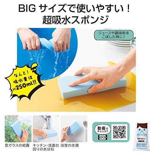 水滴ちゃんとふき取り超吸水スポンジ ブロック。驚きの吸水パワー。250ml。コップ1杯余裕で超スピーディ吸水。
