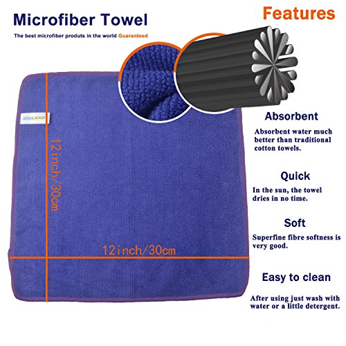SINLAND マイクロファイバー クリーニングクロス 業務用タオル キッチン 掃除 洗車 吸水 速乾 クロス 12枚入 パ