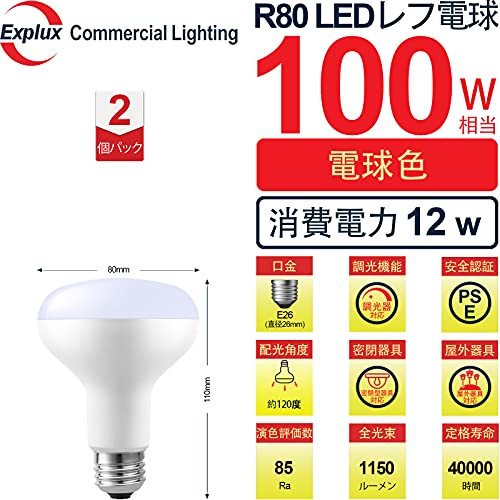 | 商品名 | Explux 調光LEDレフ電球 100W形相当 E26口金 電球色 (12W・1150lm) 調光器対応 下方向・広配光タイプ 密閉形器具対応 R |