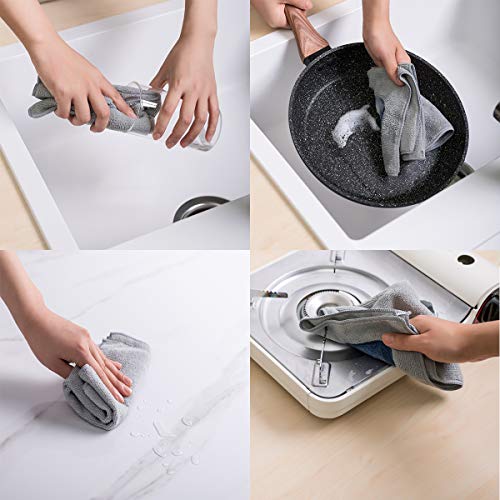 【より厚い生地】普通の雑巾より少し硬くて破れにくいです。吸水性と吸油性がよくて、茶碗やスプーンはもちろん、油付いた調理道具も気軽に汚れが取れます。調理道具を傷めなく、カビも生えにくいです。