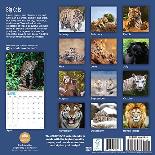 2022 Big Cats Wall Calendar by Bright Day, 12 x 12 Inch, Tiger Lion Cheetah