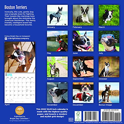 2022 Boston Terrier Puppies Wall Calendar by Bright Day, 12 x 12 Inch, Cute Dog