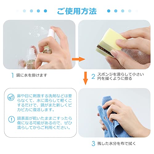 【多機能】浴室の鏡の水垢、ウロコ、カルキなどの除去