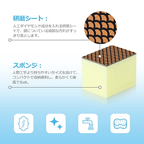 Magicfour 4個 鏡 ウロコ取り 掃除 スポンジ 水垢落とし 鏡磨き ダイヤモンド研磨パット クリーナー