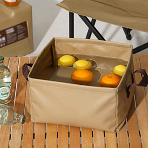 【利用シーン】当社の折りたたみ式水桶は、防水性・耐久性に優れたPVCシート生地を使用しており、耐摩耗性に優れた安心の品質です。キャンプでの水の運搬、食材や食器、衣類の洗濯、バケツに水や氷を入れて保温など、さ