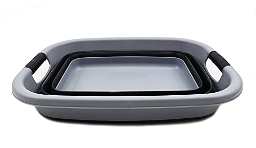 SAMMART 21L 折りたたみ式洗濯かご/タライ 折りたたみ式収納コンテナ/整理ケース ポータブル洗濯バケツ 取っ手