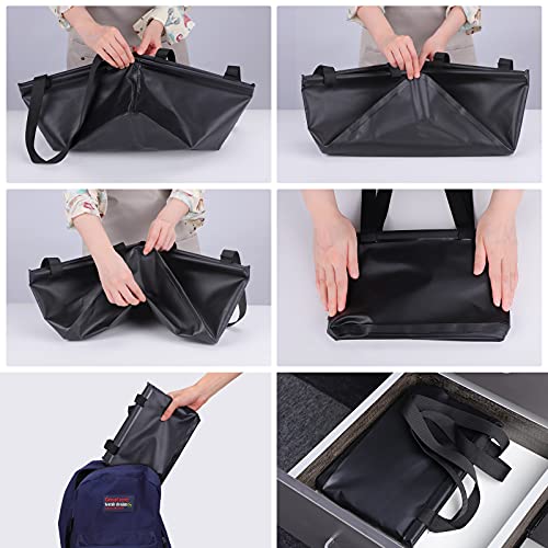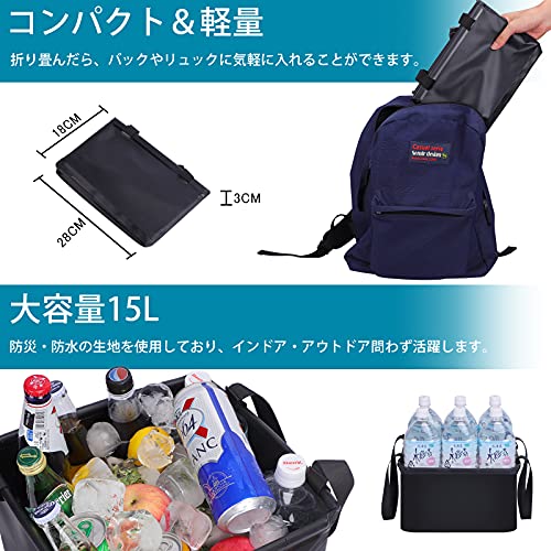 【防水防炎素材&自立式】防炎・防水のターポリン生地を使用しており、耐摩耗で丈夫で長持ちします。耐高温低温で、清潔と乾燥は快速です。水を入れるとしっかり直立します。 何度も折り畳まれても壊れない。持ち手の部分は長くてしっかりして、たくさん入れても安定して持ちます。