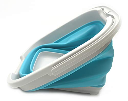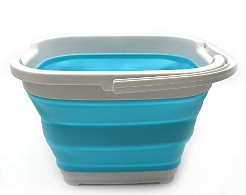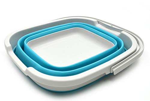 SAMMART 10L(2.6ガロン)折りたたみ式 長方形 便利 バスケット/バケツ 1 グレー/ブライトブルー