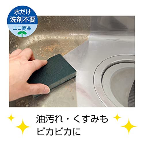 シンク・厨房等のキズ、くすみ、油分で汚れた黒ズミ等を水に濡らして磨くだけで簡単に落とせます。