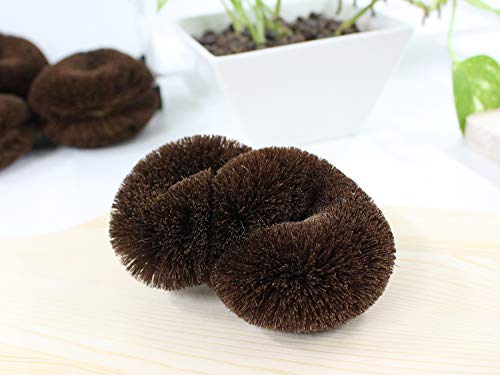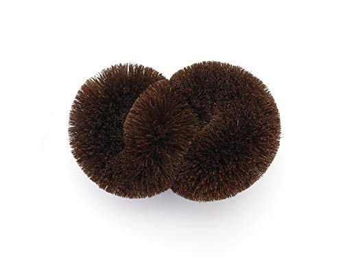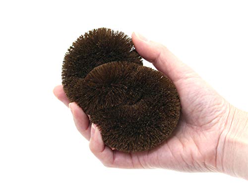 無限(∞)をイメージした形状の棕櫚たわし。 ねじりを加えた形は握りやすく、金具を中に隠しているので全面を使って洗えます。
