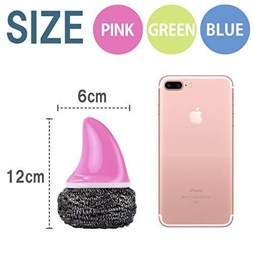 HAMILO ステンレスたわし 金属たわし キッチン コゲ 汚れ落とし 磨きやすい 3個セット (グリーン×ブルー×ピン