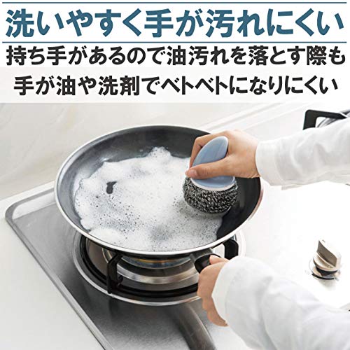 主婦やコックの悩みはアルミや鉄製の鍋やフライパンに付いたおコゲの汚れ。金属たわしでゴシゴシ削ってもうんざりするほど落としにくく、さらに持っていると指先まで痛くなってしまいます。この金属たわしは持ちやすい柄が付いているので、力を入れてゴシゴシ焦げつき汚れを落とせます。