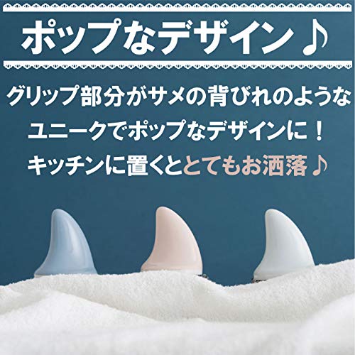 グリップの部分はまるでサメの背びれのようなユニークなデザインですが、これが意外と握りやすく研磨する面に押し付けながらグリグリ洗うのに非常に合理的な形です。研磨剤が入った洗剤でシンクやコンロ、フライパンなど泡立てて洗うと、バブルの中で動く姿はまるで獲物を狙うシャークのよう。嫌な水仕事が楽しくなります。