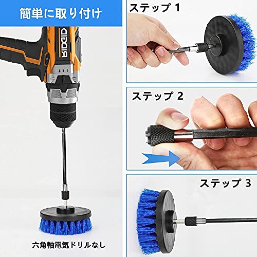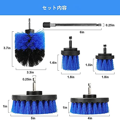 ?【電動掃除ブラシセット内容】この商品を購入しますと、最後直径12cm丸型ブラシ×1;直径10cm丸型ブラシ×1;直径5cm丸型ブラシ×2;直径8cm砲弾型ブラシ×2;15cm延長ロッド×1、総計7点セットが入手します。軸径が6.35mmの六角軸電気ドリル・電気ドライバーに適用してます。