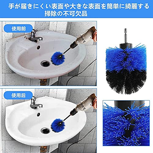 ?【素早く掃除できる】高速回転ブラシなので、電動ドリルと組み合わせて頑固な汚れを効果的にこすり落とすことができます。掃除しやすい、使い分ける4種類のサイズのブラシによ
