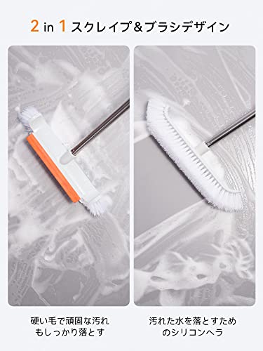 デッキブラシ 風呂掃除 ブラシ 2WAY 水切りワイパー ベランダ掃除用ブラシ 3段長さ調節可 タイルブラシ 屋外