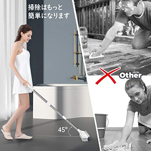 【清掃能力は強い】45度の傾きで、腰に負担が掛からず、掃除しながら膝と背中の痛みを軽減します。ブラシは乾いても濡れても使用できます。壁、キッチン、バスルームに使用されるだけでなく、ガレージ、歩道、スタジアムなどにも最適です。