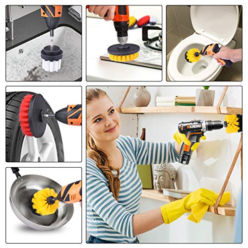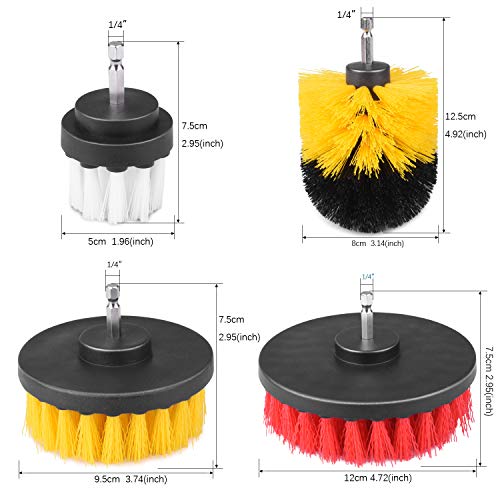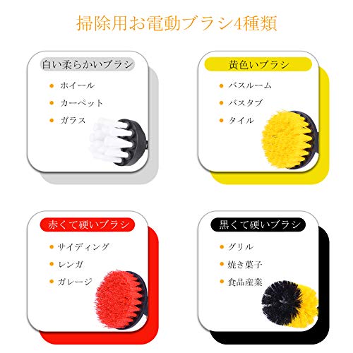 【4種類ブラシセット 】:黄色のドリルブラシ、黒と黄色のスクラブブラシ、赤い硬いクリーニングブラシ、白い柔らかいカーペットブラシなどのブラシは様々なコーナーの汚れを取り除くことができます、電動ドリルを接続して操作が簡単です。掃除が楽々手を疲れません。