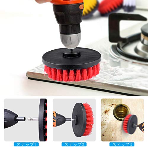 【究極の互換性】:掃除しやすい、使い分ける4種類のサイズのブラシにより、手が届きにくい表面や大きな表面を簡単に綺麗することができます、ほとんどすべてのコードレスドリルにコードレスドリルに適合して簡単に取り付けることができます、あなたの家