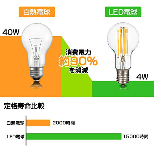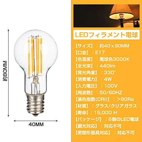 | 商品名 | Haian Support フィラメント電球 E17口金 40W形相当 ミニクリプトン電球 4W LED電球 電球色 3000k 440lm シャンデリア 広 |