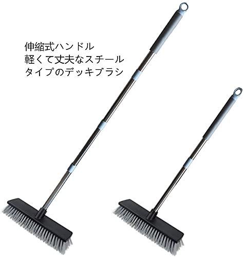 【使いやすいブラシ】デッキブラシは玄関やガレージ、トイレなどのコンクリートやタイルの汚れを落とす、シンプルで使いやすいブラシです。さらに、改良されたデッキブラシのハンドル部分は伸縮式なので、ラクな姿勢でお掃除ができます(伸縮長さ約77cm~126cm)。