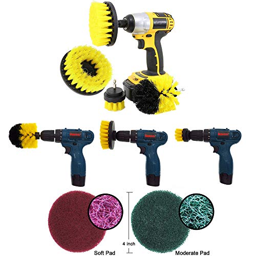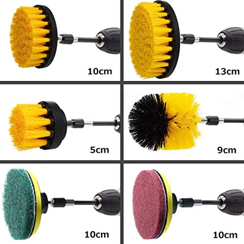 【製品仕様&パッケージ内容】2インチ丸型ブラシ1、3.5インチ砲弾型ブラシ1、4インチ丸型ブラシ1、5インチ丸型ブラシ1、4インチ研磨パッド9、4インチスクラブコネクター2(ご注意:本製品にはドリルが含まれていません)