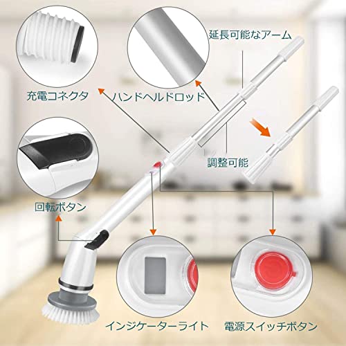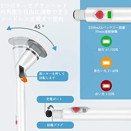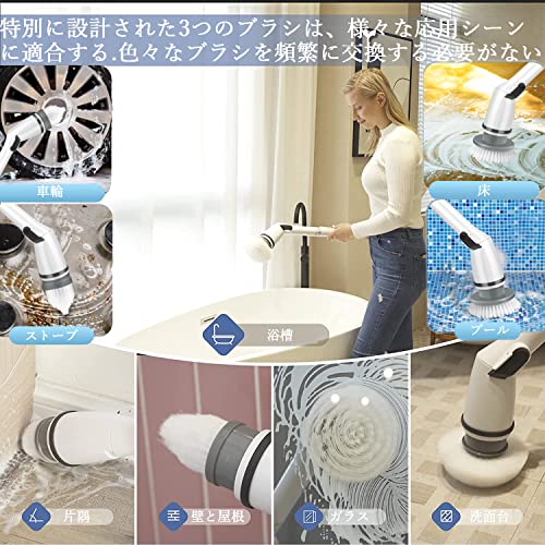 電動掃除ブラシ お風呂 浴室掃除用ブラシ コードレ スデッキブラシ バスポリッシャー 多機能切替ブラシ 450RPM