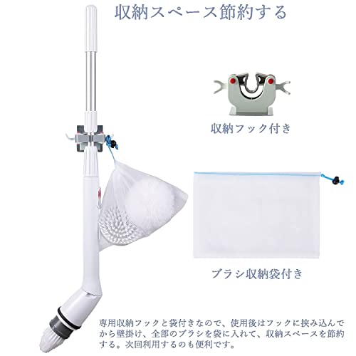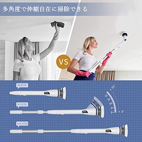 【長さ三段階・角度調節】伝統的な電動お掃除ブラシより、バスポリッシャーは3段設計で、清掃距離によって、延長ハンドルを取り付けたり、長さが自由に調節できます。角度調節のポタンを押してヘッドを回して、自由に角度を調節できます。