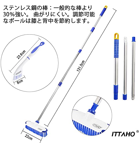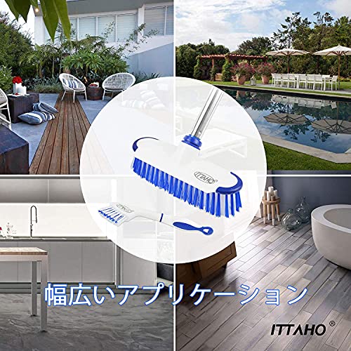 ITTAHO マルチユース フロア スクラブ ブラシ ロング ハンドル付き タイル、床、デッキ、パティオ、大理石、ガ