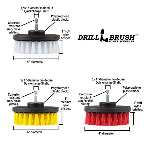 Drillstuff クリーニング用品ドリルのために毛のブラシの4インチバラエティパック。シンク、シャワー、タイル