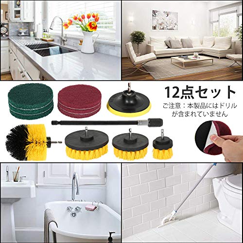 Thatboyjp 電動掃除用ブラシ 12点セット 風呂掃除 台所掃除 浴室掃除用ブラシ 六角軸電動ドリルに適応 キッチン